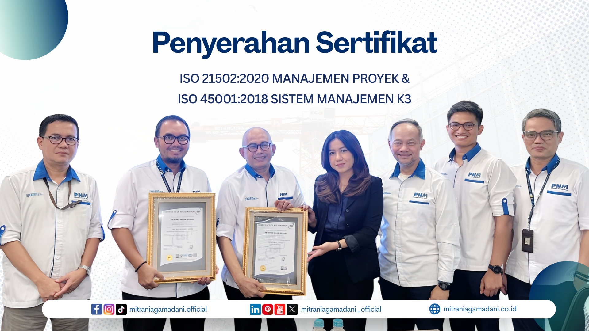 PT Mitra Niaga Madani dengan penuh apresiasi mengumumkan pencapaian penting dalam perjalanan perusahaan melalui perolehan sertifikasi internasional ISO 21502:2020 tentang Manajemen Proyek dan ISO 45001:2018 tentang Sistem Manajemen Keselamatan dan Kesehatan Kerja (K3).